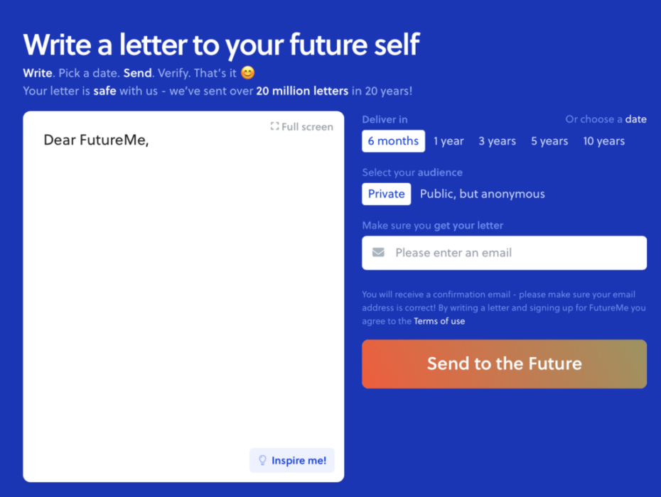4. Write a letter to your future self, this site delivers it later