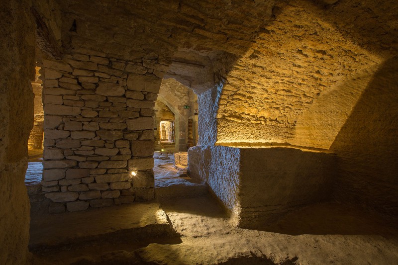 The Caves du Palais Saint-Firmin reveal the hidden infrastructure that once sustained life here. Olive oil mills, storage rooms, silos, and water systems carved directly into the rock.